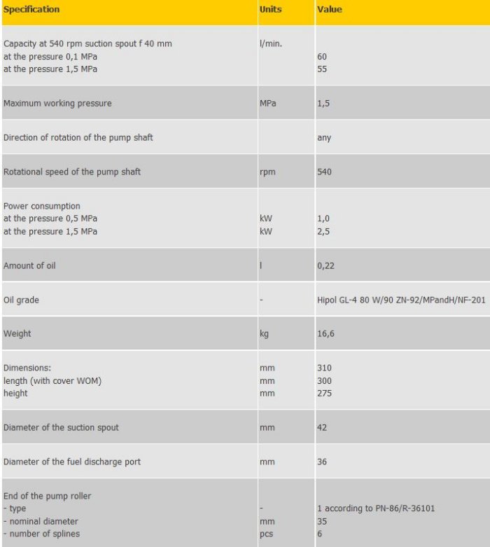 - the pump marked PP60 is a pump for field sprayers with one splined ending of the shaft.