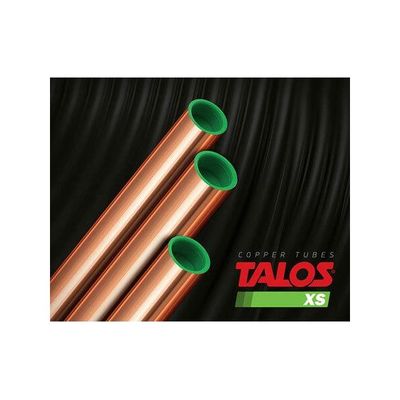 TALOSⓇ XS tubes are manufactured using a high strength copper-alloy (CuFe2P) material, in order to satisfy the demands of today’s high-pressure CO₂ systems in refrigeration, as well as, other high-pressure HVAC&R applications. TALOSⓇ XS tubes are designed to withstand high operating pressures of up to 120/130bar. At the same time, TALOSⓇ XS tubes are manufactured with comparatively thinner walls and thus achieve an economical advantage that meets the pressure equipment design. The well-known installation practices of refrigeration copper tubes are followed also for the case of TALOSⓇ XS tubes, both in systems and in the field (see relative EN378 standard for guidelines). Since the processing methodology remains essentially the same, existing tooling and handling equipment are utilized. This includes brazing with standardized silver braze alloy (min. silver content of 2%), bending with traditional tools and joining with standardized fittings made from copper alloy (CuFe2P).