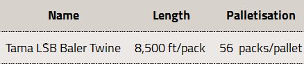 LSB twine is suitable for use in all makes and models of Large Square Balers – fully tested on Cormick and Deering knotting systems.