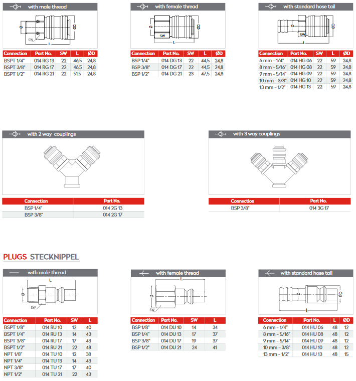 Tamsan - Model 014 Series -Standard Pneumatic Quick Coupling
