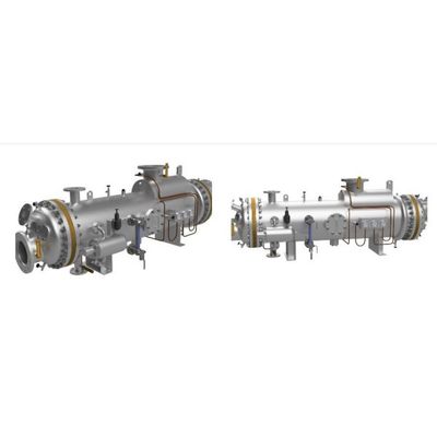 The cargo tanks in oil carriers require cleaning with hot water. This heater uses steam to raise the temperature of seawater to approximately 80 °C for effective cleaning. Steam flows in the shell side and seawater flows in the tube side.