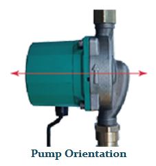 The volute of the pump (silver part) can be installed in either a vertical or horizontal orientation. However the can (green part) must be installed in a horizontal orientation.