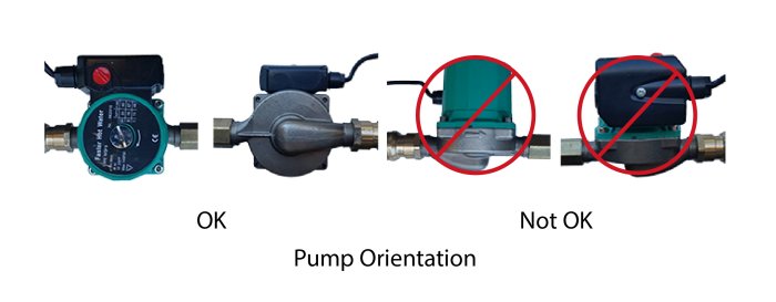 The pump andFlow Monitorcan be installed in the hot water line that comes out of the water heater and goes into the house. It does not need to be located next to the water heater but it needs to be located before the first hot water lateral.