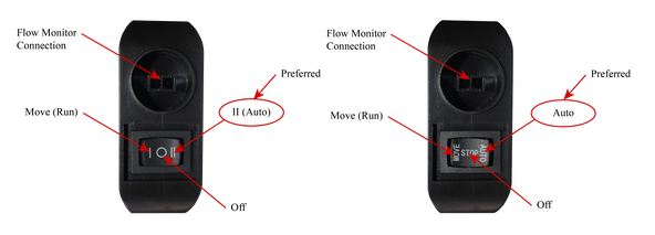 There are 2 switches that controls the speed of the pump and how it works. The first switch is located in the power cord and contains the connection box that theFlow Monitorwire snaps into.