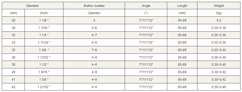 - Custom: taper, diameter, buttons number, button type, and flushing holes can be customized according to client`s requirement and drawing.