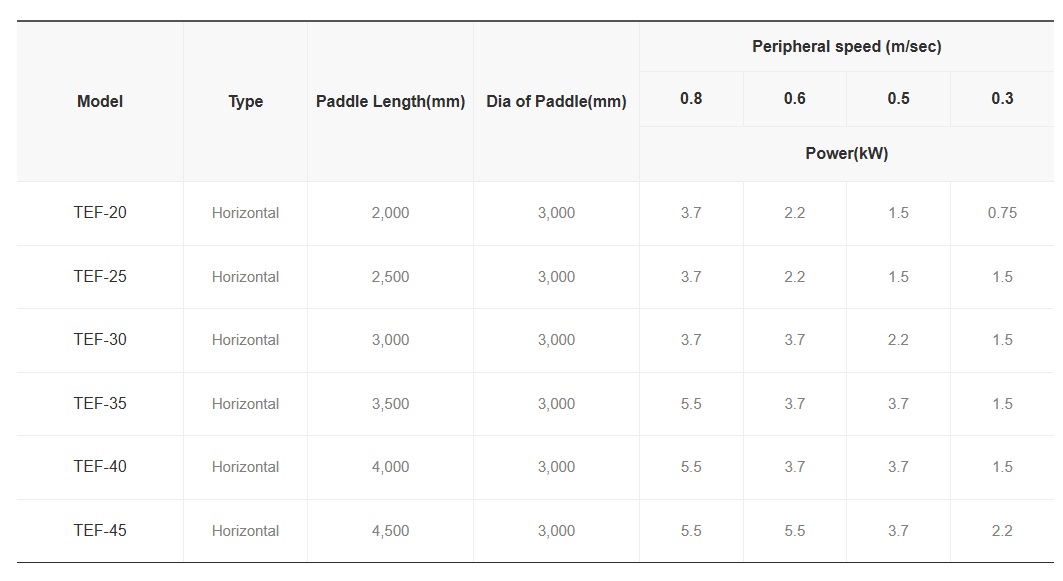 - Form : Horizontal paddle type, vertical paddle type of vertical turbine type