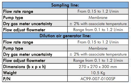 DDS system assembles in a single rack the sampler and the dilution unit. It is supplied by an internal rechargeable battery with a 7 hours autonomy. DDS is equipped with a membrane pump, a precision flowmeter and a dry gas meter. The two streams are regulated independently, so the dilution ratio should be changed to satisfy different stack condition. The temperatures inside the dry gas meter are read with 2 digital thermometers. A multistage protection trap shields the instrument from damages caused by accidental liquid aspiration. A multistage filter on dilution air remove any kind of particulate and organic pollutants.