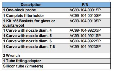 The isokinetic probe is typically composed by a one-block body including the pitot tube, an isokinetic sampling kit in which filterholders and nozzles are included, and