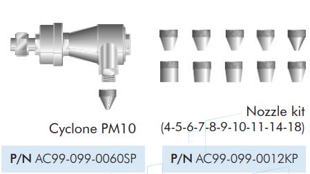 The PM10 cyclone inlet nozzles are available as kit or as single unit.