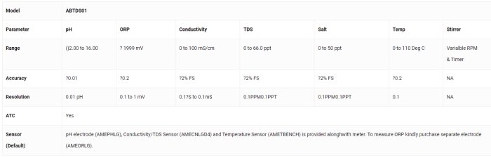 We have specially developed an accurate high performance and multipurpose meter for detailed analyses of TDS / Conductivity / Salt in industries. These meters measure temperature and are available with built in stirrer which enhances the measuring performance and provides highly accurate readings. The meters has a multi parameter option i.e. same meter can analyse pH or ORP by just connecting a pH or ORP electrode. Understanding the need of a multi parameter meter for laboratory use we have designed a compact spill proof & high performance bench top meter.