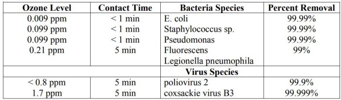 USEPA recognizes ozone as the safest disinfectant that provides highly effective disinfection to achieve high log inactivation not achievable by chlorine, UV or chlorine dioxide. Reference the following chart: