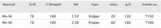 Air regulation. Pilot flame. Max. 1300°C.