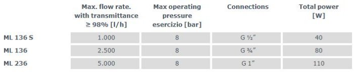 “Linea casa” series is ideal for dealing modest water capacities. The sterilizer uses low pressure and high rendering mercury vapor UVC lamps. The lamps are housed in transparent high purity quartz tubes. The reaction chamber is made of stainless steel AISI 304. All parts that come in contact with the fluid are made of stainless steel with sanitary finish to ensures maximum hygiene. Lamps lifetime and therefore their efficiency is approximately 9,000 hours, varying according to the number of starts and stops of the unit.