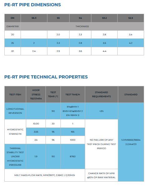PE-RT pipe is commonly known as heat-resistant polyethylene (PE-RT) pipe, which is made from high density polyethylene (HDPE) with benefits of high temperature and freezing resistance. PE-RT pipes color is the raw material color namely transparent color, does not add any color masterbatch and filler. Other color can also be made as per request. The pipes are sold in coils and straight lengths. There are two types PE-RT PIPE: Type I and Type II pe-rt pipe.