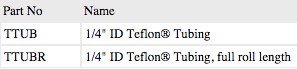 - Teflon - Tubing