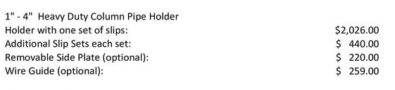 - Slip sizes include 1", 1.25", 1.5", 2", 2.5", 3" 3.5" and 4" column pipe and A, B, N drill rod.
