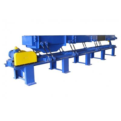 A vibrating conveyor is a perfect solution for feeding short-sized waste of various geometric shapes such as wooden cubes or short edgings. The conveyor consists of a chute connected to a load-bearing frame with spring elements, and is driven by an electric motor through the eccentric system. Low power consumption of the eccentric system results from the resonance principle of work of the conveyor. Depending on local conditions, the conveyor rests on a support frame set on a foundation. The advantage of using the vibrating conveyor is spreading the material evenly in the chute, and consequently its smooth feeding to the machine as well as extending the machine life. Evenly spread of the material along with its smooth feeding  ensure maximum productivity of the chipper.