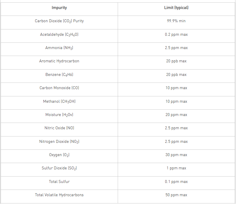 Raw carbon dioxide (CO2) is commonly sourced from ammonia plants, ethanol plants, and other fermentation sources. For use in food and beverages, proper removal of certain compounds in these processes is critical because many of them can pose health risks and impact beverage odor and taste. As a result, ultra-pure CO2 gas suppliers and bottlers continuously check product quality for part-per-million (PPM) or even part-per-billion (PPB) levels of these impurities. Impurity limits and the need to continuously monitor may vary depending on the customer and raw CO2 source.