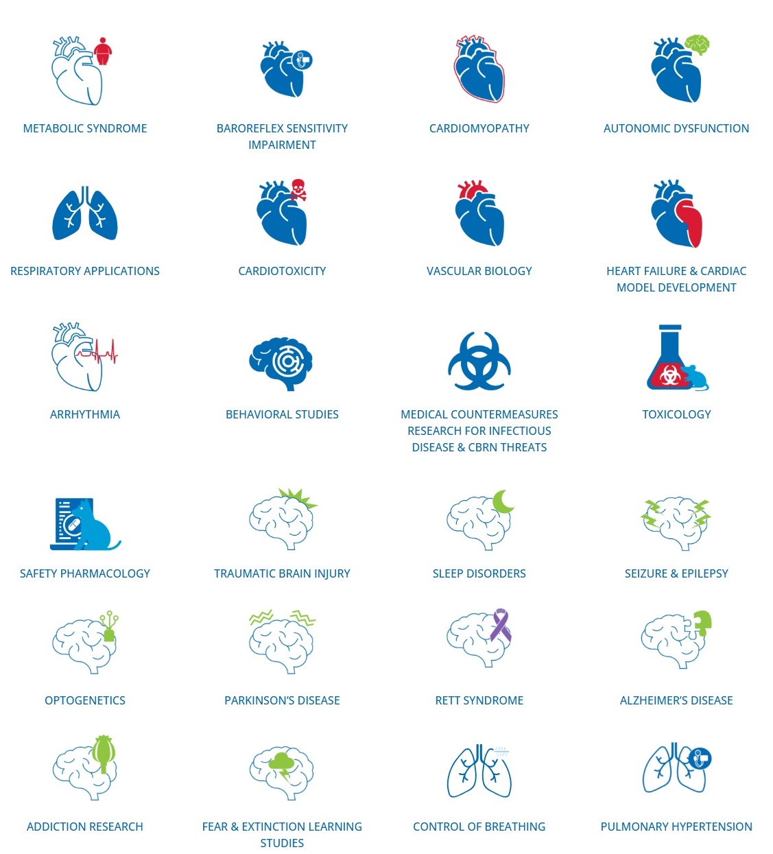 easyTEL+ is a fully implantable digital system, that transmits physiological data from conscious freely moving laboratory animals. It can be remotely managed and configured. Intended for use in preclinical research (primarily toxicology, pharmacology and safety pharmacology studies) and biodefense, the easyTEL+ implants are ideal for large animals > 1 kg. Various models offer the ability to continuously record Biopotential (ECG, EEG, EMG, EOG)*, Blood pressure, Respiration**, Temperature and Acceleration.