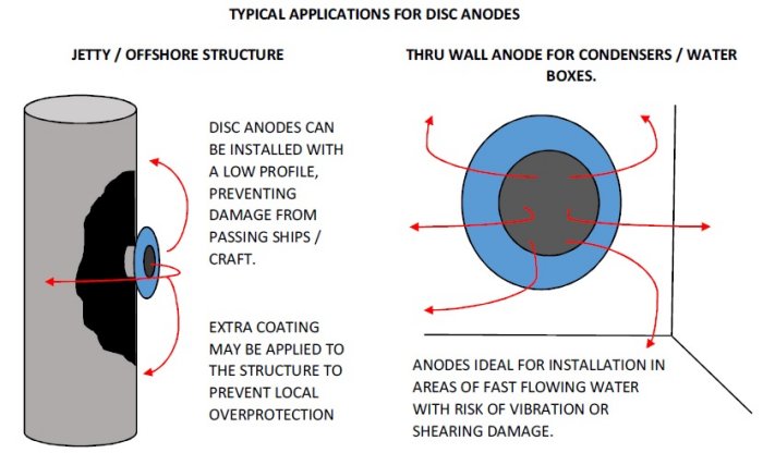 TELPRO Disc Anodes are available as standard in diameters of 6” (150mm) & 12” (300mm) as well as other sizes which are all available upon request.