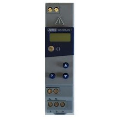 The two-step electronic temperature controller is mounted in a rail mounting housing. The temperature sensor input is developed for a two-wire PT100 sensor and is equipped with a protection against short circuit and sensor breach. The desired operating temperature can be set by using the respective control keys. Temperatures can be displayed in degrees Celsius or degrees Fahrenheit. The actual value is indicated via three-digit display and the controller function via LED.
