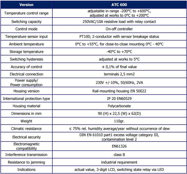 The ATC 600 two-step electronic temperature controller was specifically designed for the control of different heated components
