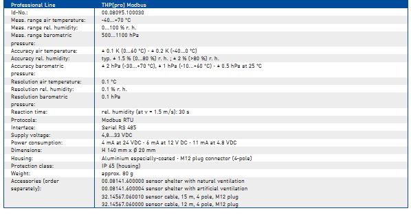 Lambrecht - Model THP[pro] Modbus -Temperature Humidity Pressure Sensor