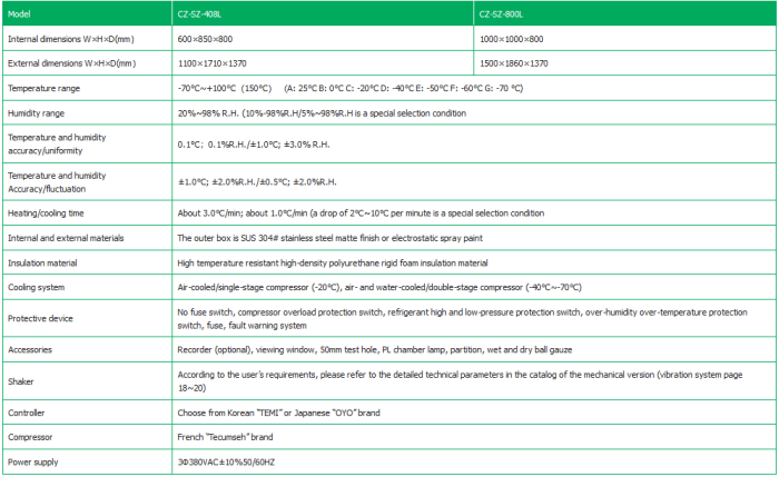 - Refrigeration compressor unit and main accessories are imported. Imported LCD color LCD touch screen controller, automatic temperature and humidity program control, equipped with the R232 communication interface;