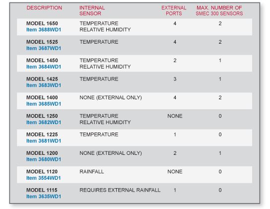 These WatchDog 1000 Series Micro Stations measures temperature from internal sensors ONLY, along with their available sensor ports (vary by model). If you require built in temperature and RH or external sensors only, please see our other 1000 Series Micro Station options.