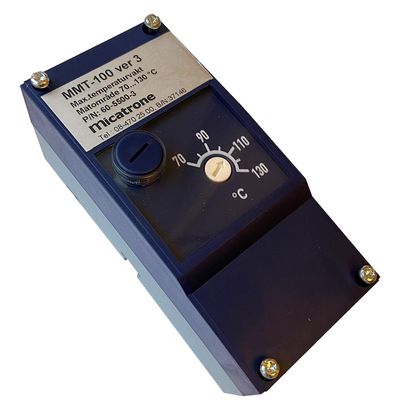 The MMT-100 temperature monitor is used to block the fuel input into a boiler when the temperature of the supply line from the boiler exceeds a certain limit. Recovery is done manually.