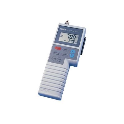 Handheld pH/mV meter in a water resistant case with RS-232, BNC and 8-pin connectors. pH/mV/Temp. microprocessor handheld meter in splash proof case with up to 3 points calibration, 40 memory storage, RS-232-C IBM compatible communication interface and BNC, pH/ORP connector with 8-pin DIN ATC connector. AC/DC power. CE Approved.