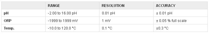 - pH Electrode Offset Recognition±90 mV at 7.00 or 6.86 pH