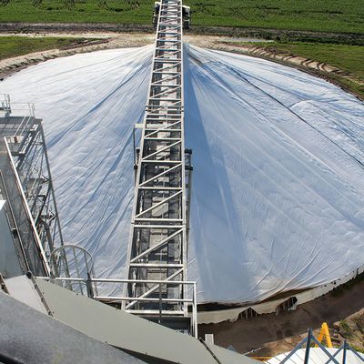 Free standing center aeration tower with tarp, skirt, lift ring, fans, and winches. Tower is fully shop welded to reduce field installation costs. 4`, 6`, and 9` perforated bunker wall heights. Pile sizes range from 1 to 2 million bushels capacities. Wireless control options available upon request. Walls can be configured to an oval bunker system for larger capacity requirements. All intermediate tower and bridge for a complete turnkey product line offering. Bunker walkways for OSHA compliance.