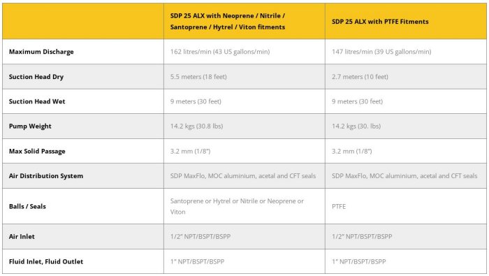 Teryair aluminium constructed pumps are commonly combined with Neoprene, Nitrile, Santoprene, Hytrel, Viton or PTFE Elastomers. With these elastomers they are ideal for pumping of water and water-based fluids, non-aggressive fluids, oily fluids and fluids having low acidic or alkali concentrations Aluminium Pumps offer a relatively low-cost solution to many pumping applications. For this purpose, the main industries that choose Aluminium pumps are Paints, Marine, Mining, Ceramic and Wastewater/Pollution management.