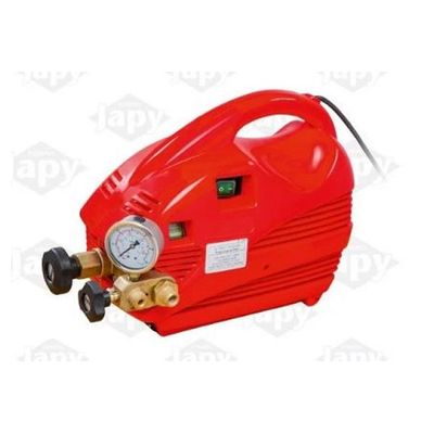 Technical data : Body: brass. Control valve with pressure gauge. Suction hose: length: 1.5 metres. Discharge hose: length: 1.5 metres. Power: 1.75 kW. Voltage: single-phase 230 Volts. Max. pressure: 50 bars. Specifications and advantages: Electric test pump.