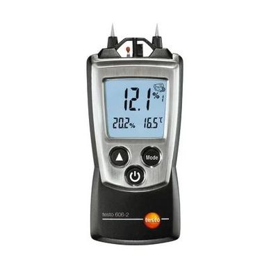The testo 606-2 is a particularly practical and easy to use material moisture measuring instrument in pocket size. The material moisture is displayed directly in percentage weight by means of stored material characteristic curves for wood and building materials. Characteristic curves are available for measuring wood moisture in beech, fir, larch, oak, pine and maple wood.