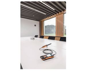 Carry out measurements at air/ceiling outlets effortlessly and without using a ladder. Fit your vane probe (Ø 100 mm) with the telescope with 90° angle and, if necessary, with the telescope extension (both can be ordered separately).