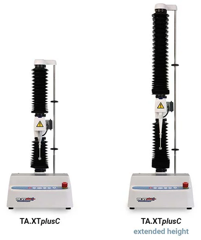 Our most popular single column Texture Analyser for universal application.The TA.XTplusC is Stable Micro Systems` flagship texture analysis instrument. A single-column, portable solution for your texture analysis and materials property testing, measuring up to 50kg in force. With a speed range of 0.01 to 40mm/second this extremely precise model can be programmed to conduct almost any mechanical test imaginable, allowing the imitation of real-life situations, using any of our vast range of probes and fixtures. It is also available in both standard and extended heights offering testing apertures of 370 and 590mm, and is consequently the most popular choice for universal texture analysis.
