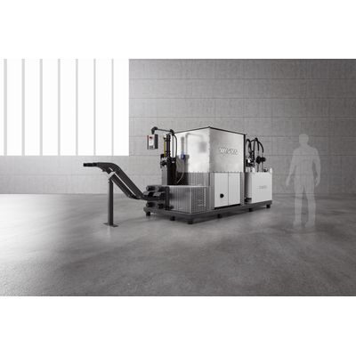 For reliable and economical volume reduction. The TH 1500 briquette press compresses material within a matrix. This ensures the briquette is formed in a consistent shape and then discharged through a two-sided discharge. The use of a closed matrix for compacting loose chips, dust, or shredded materials, combined with a powerful hydraulic unit, results in extremely high briquette densities. TH Industrial series machines are state-of-the-art and extremely robust in design. Depending on the specific material, the throughput capacity is up to 700 kg/hr (TH 1500).