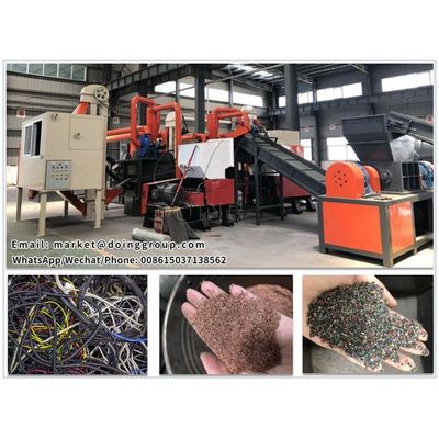 Henan Doing copper cable granulator machine is used for separating copper and plastic through shredding or crushing, air separation or electrostatic separation. First, put waste wires and cables in to crusher and crushed into small pieces. And then air separator separate copper from plastic because of the different specific gravity of them. For very thin wires, copper cable granulator machine can also equipped with electrostatic separator, it can separate thin copper from copper cables so the recovery rate could be assured to almost 99.9%. The dust removal system could ensure no dust fly around during the operation.