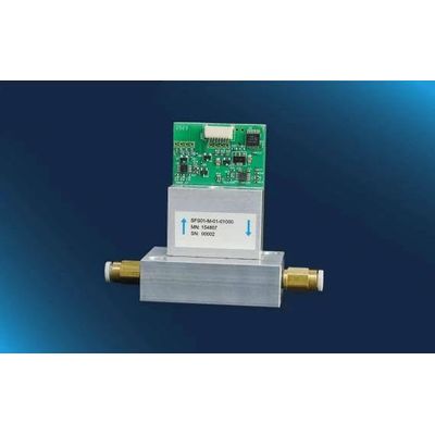 Thermal mass flow module with linearized digital / analog output. Fast and compact flow module, suitable for gas dosing systems, manifolds and analysers; Practical Evaluation Kit with fluidic block adapter for direct tube atachment, M5-4 connectors for 4mm tubing included (exchangable).