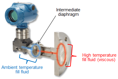 The Rosemount Thermal Range Expander is a seal system that uses two different fill fluids to extend the operating temperature range of the system.