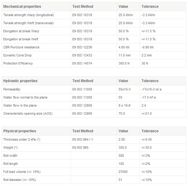 The GeoMatt TB range gives one of the best performing nonwoven geotextiles in the market. The strength obtained / unit weight is amongst the highest currently available. The nonwoven product is ideal for most applications where separation, filtration and draining is required. Road works, access roads, railway applications, car parks and industrial units etc. The GeoMatt TB is used as a filter in the construction of a french drain or granular drainage blanket. Widths up to 600 cm can be offered.
