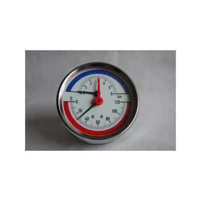 Together with a thermowell with an integrated valve which allows an easy remove of the gauge from the heating system.