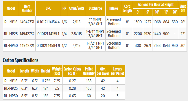 Red Lion - Model RL-MP16, RL-MP25, RL-MP50 -Thermoplastic Utility Pumps