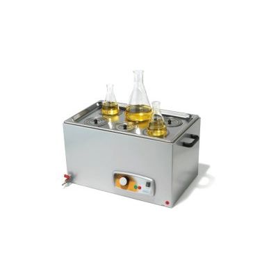 Thermostated baths with temperature controlled by means of an hydraulic thermostat, for water and oil. Double skinned tank, inner tank made of stainless steel AISI 304 and metallic housing protected with Epoxi of great resistance to aggressive surroundings. Heating resistance embedded made of special alloy of stainless steel heat and corrosion resistant. Temperature thermostat synchronized with the “on” indicator lamp. Safety cut out thermostat with indicator lamp. The unit will cut out if there is insufficient liquid or if the temperature exceeds the maximum admissible temperature. Water drainage faucet and handles for a easy transport.