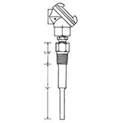 Complete thermowell assemblies in stock. Thermocouple or RTD models. Most popular immersion lengths. Spring loaded design. Choice of extensions between thermowell & head. Drilled barstock, 316SS thermowells. 3/4" NPT process connection. Weatherproof heads: cast aluminum. .250" - 304SS probes. Extensions: spring loaded fitting or spring loaded fitting/union/nipple.