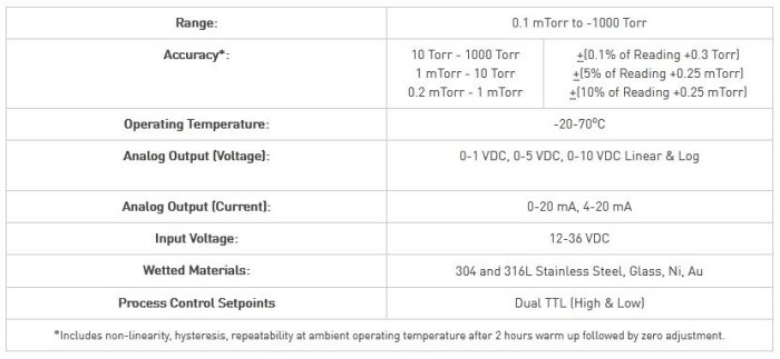 Optional Touch Screen Display, Wide Range, Flexible Vacuum Control! The HVG-2020B wide range, dual sensor vacuum gauge takes measurement to the next level. With a Piezo based sensor and a thermal based Pirani sensor accurately and confidently measure pressures across seven decades. The Piezo sensor is media isolated, gas composition independent, and periodically zeroed by the Pirani sensor. An ambient thermal sensor enables the instrument to adjust for temperature and therefore better accuracy.