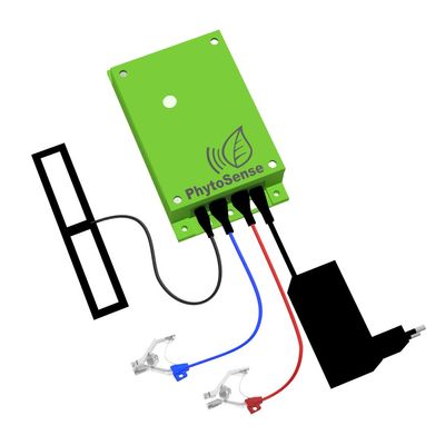 Thickness measurement of leaves and thin stems. Measures leaves between 0 and 2 mm and stems between 1 and 6 mm. Great for plants without (thick) stems. For example: ornamental plants, wheat, seedlings, ... . Stand-alone data logger connected to the network via Cellular or Wi-Fi. Sensors show plant responses to changes in the environment (irrigation, lighting, temperature changes,...) or plant manipulation (pruning, harvesting,...).