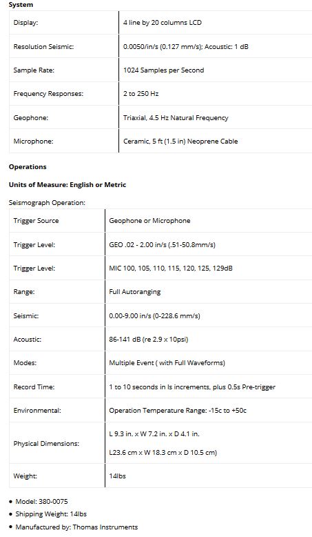 Thomas - Model VMS-2000 -Blast Monitoring Seismograph System